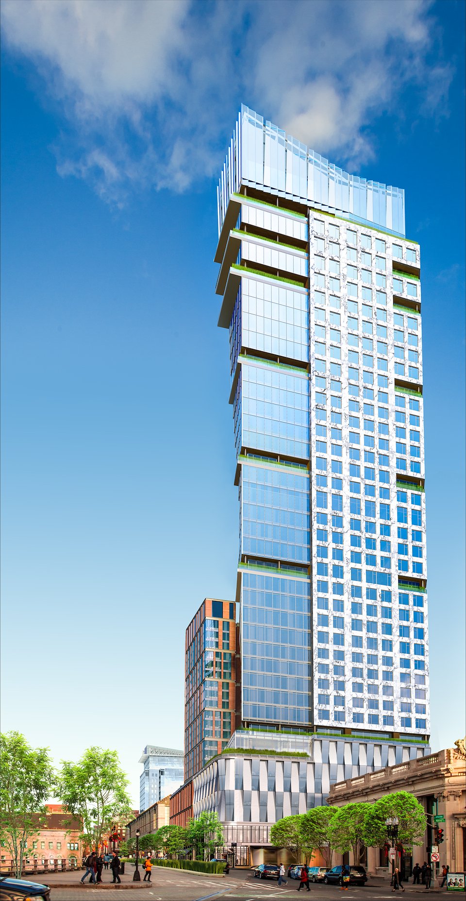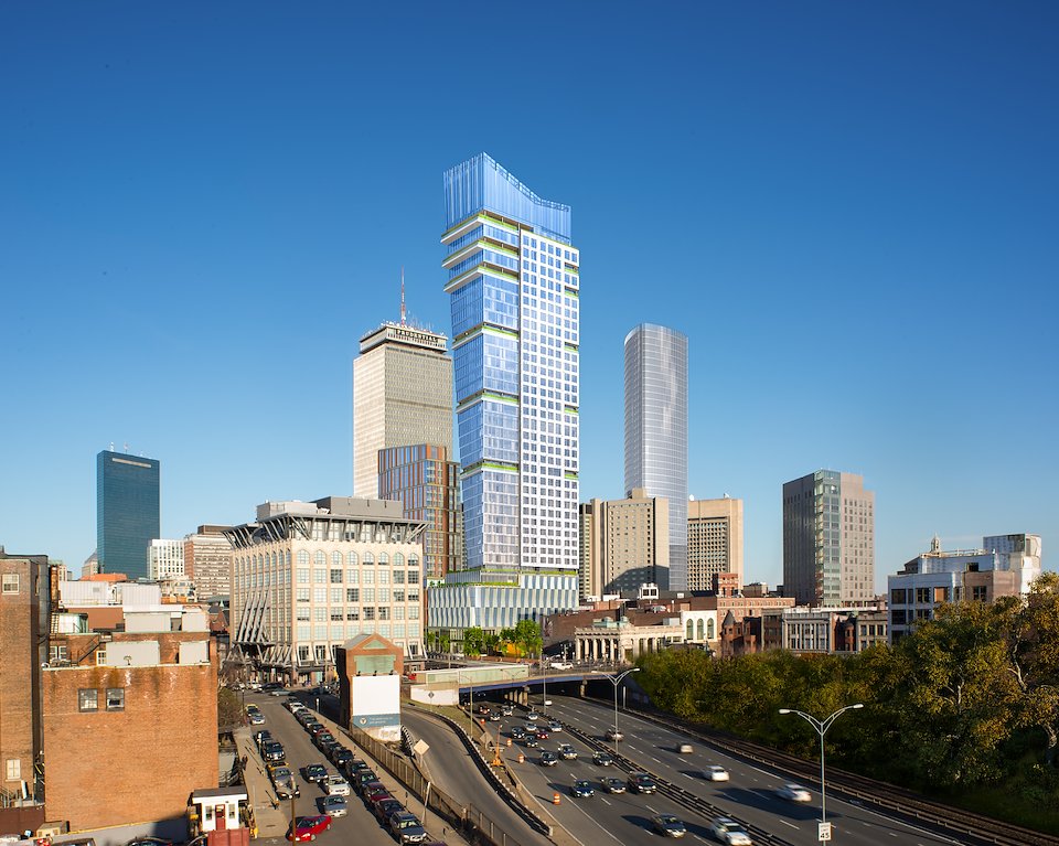 Hero view of skyscraper composited onto real-life backplate.