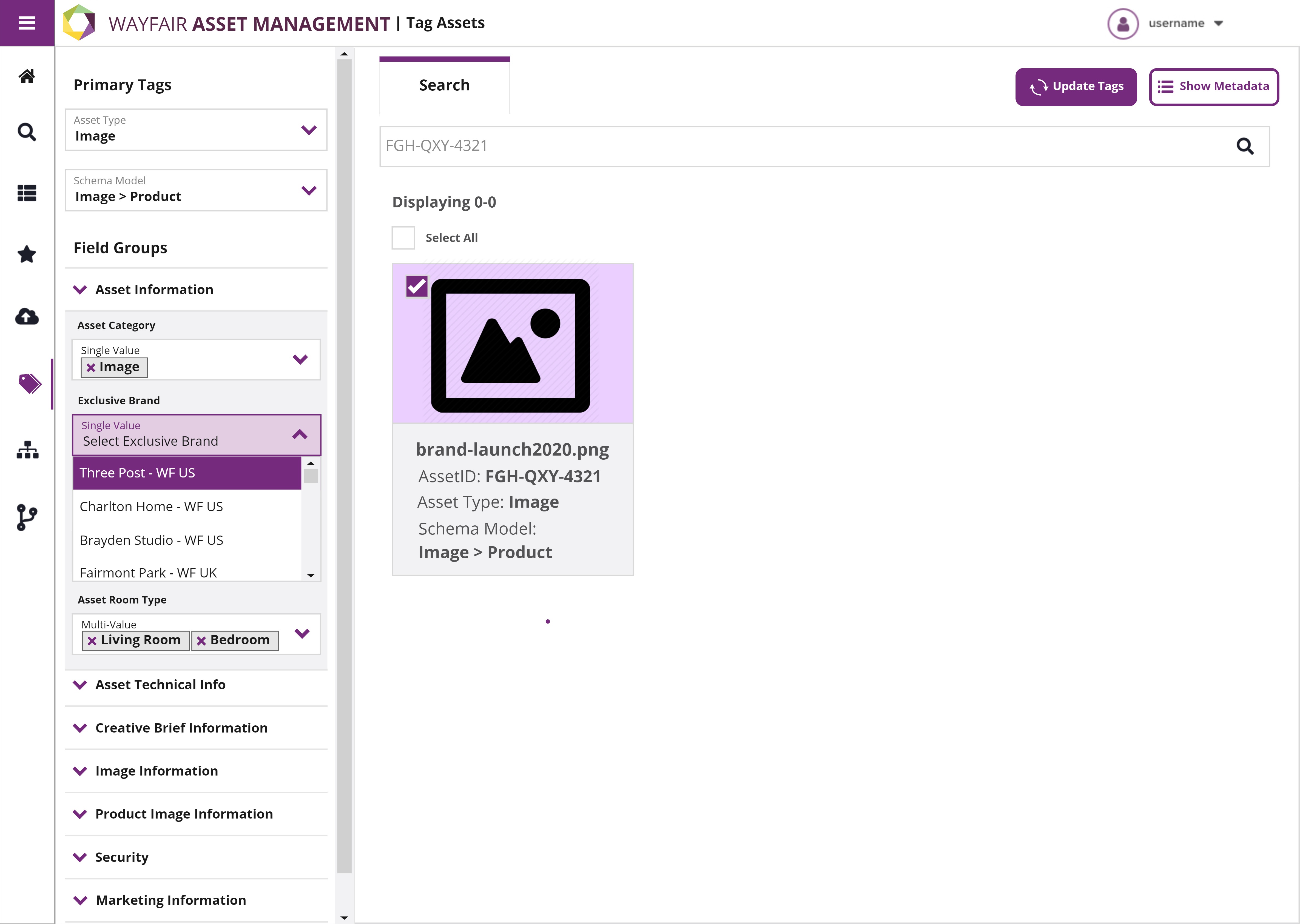 A breakdown of an internal digital asset management platform I designed for Wayfair.